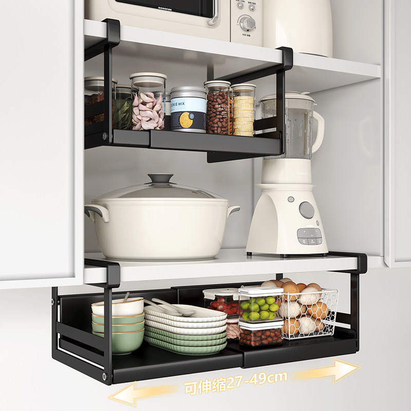 家用伸缩下挂篮置物架厨柜厨房吊柜下挂架调料柜橱柜隔板分层收纳