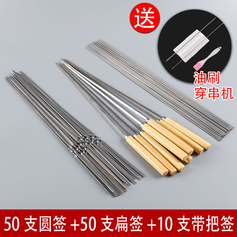 语晴烧烤签子不锈钢烧烤针羊肉串铁签字烤串烤肉用品扁圆组合烤签