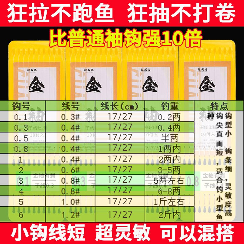 鱼钩绑好短子线双钩成品套装钓鱼袖钩金海夕金袖渔具野钓鲫鱼钩