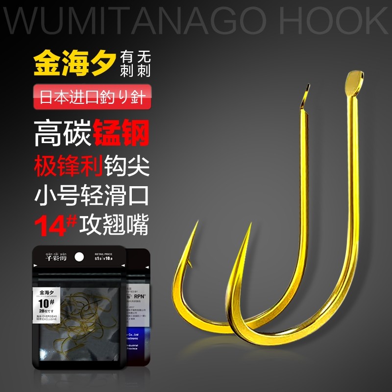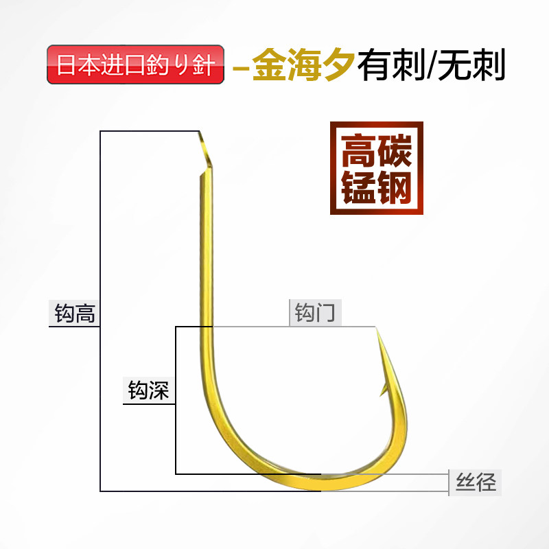 日本进口金海夕鱼钩正品翘嘴鲤鱼钩无倒刺散装清仓无刺鲫鱼新型