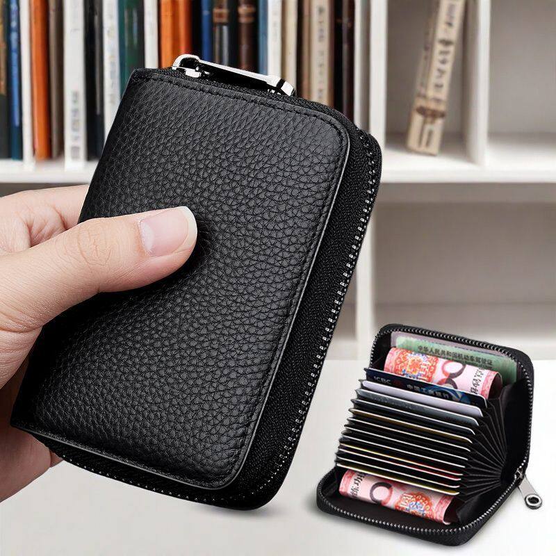 ELLE女包头层牛皮证件票夹牛皮卡包mini手持零钱隔层卡包多层卡夹