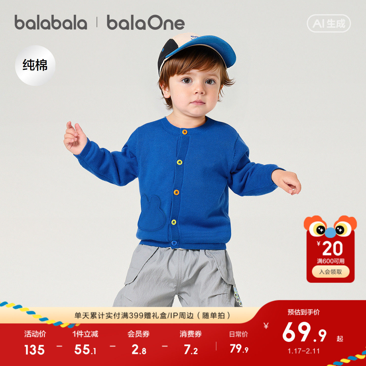 巴拉巴拉童装宝宝毛衣外套婴儿针织衫2026新款春装儿童薄开衫毛衫