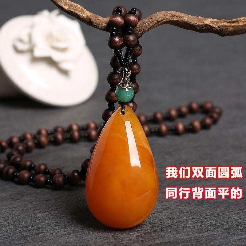 蜜蜡吊坠项链女毛衣链长款水滴挂件男民族风上档次时装配饰送老婆