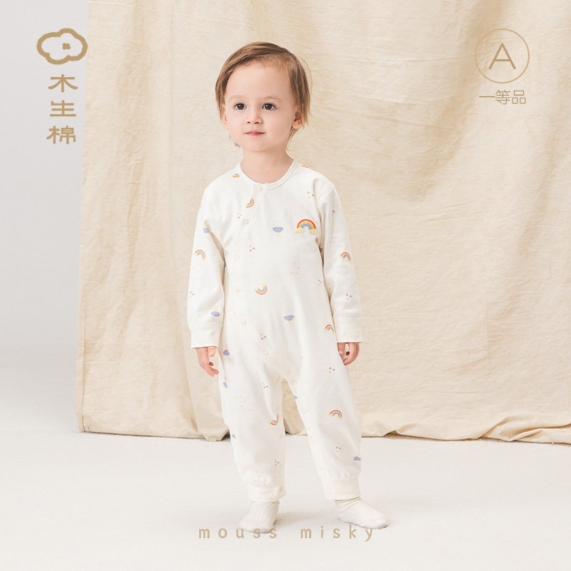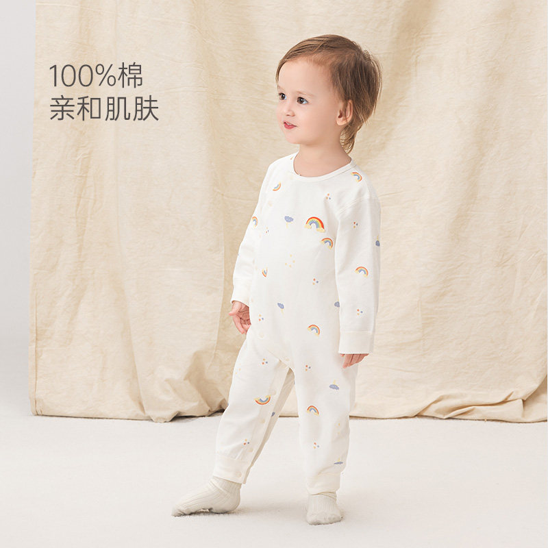 木生棉男女宝宝连体衣春秋婴儿居家长袖哈衣爬服睡衣服纯棉打底衣