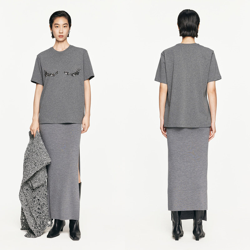 JNBY/江南布衣春秋T恤钉珠装饰上衣女棉质宽松短袖休闲5O8113920
