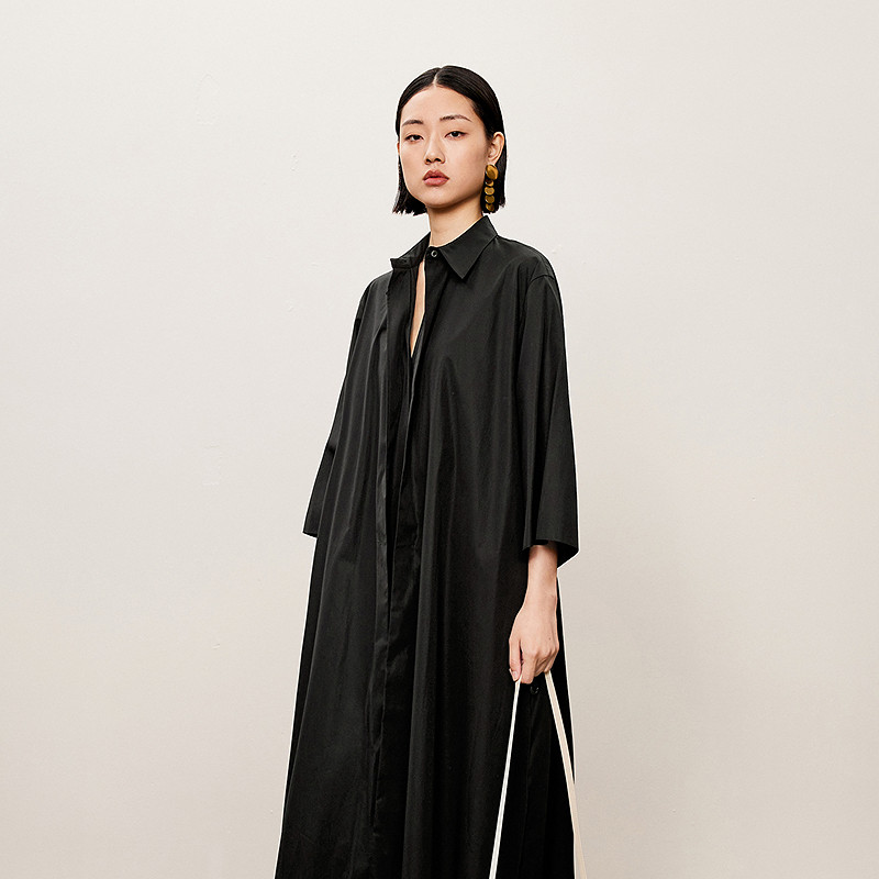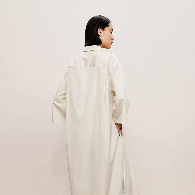 LESS秋棉质直筒宽松短袖连衣裙简约通勤风直筒长裙女2O7G11970