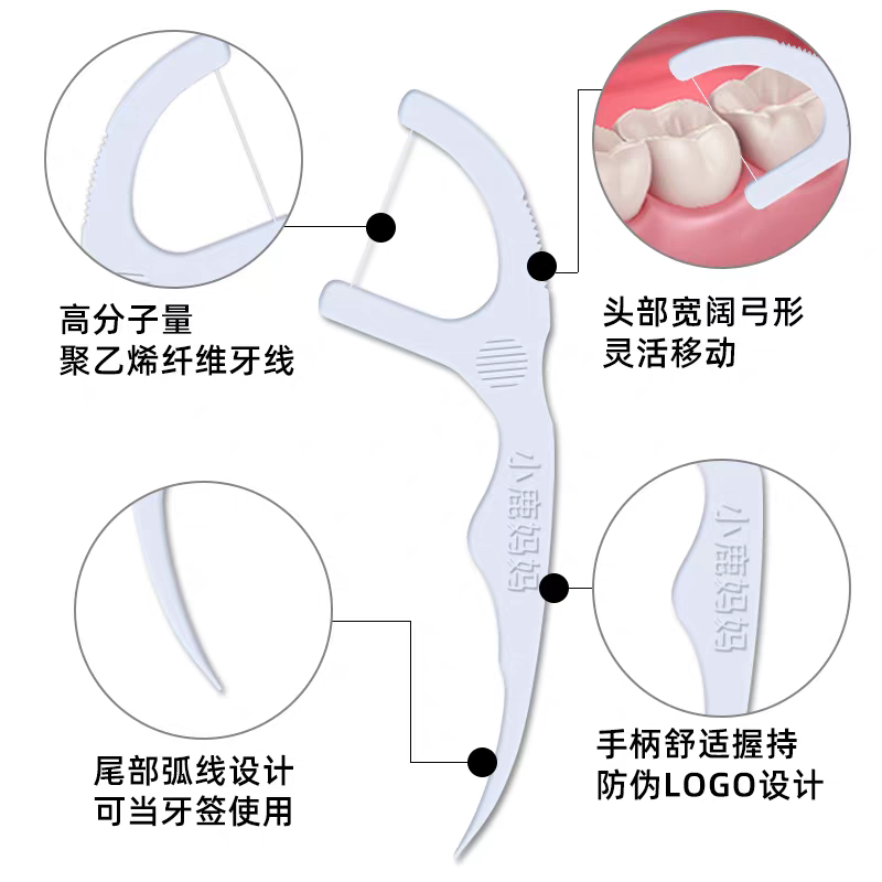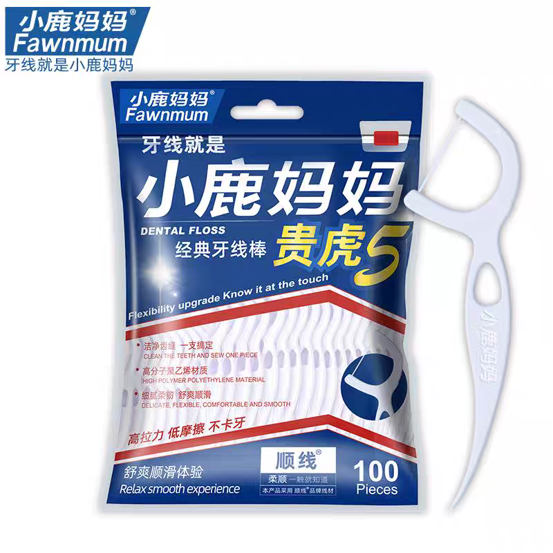 小鹿妈妈牙线力学设计棒袋装100支超细牙线剔牙签家庭装便携家用