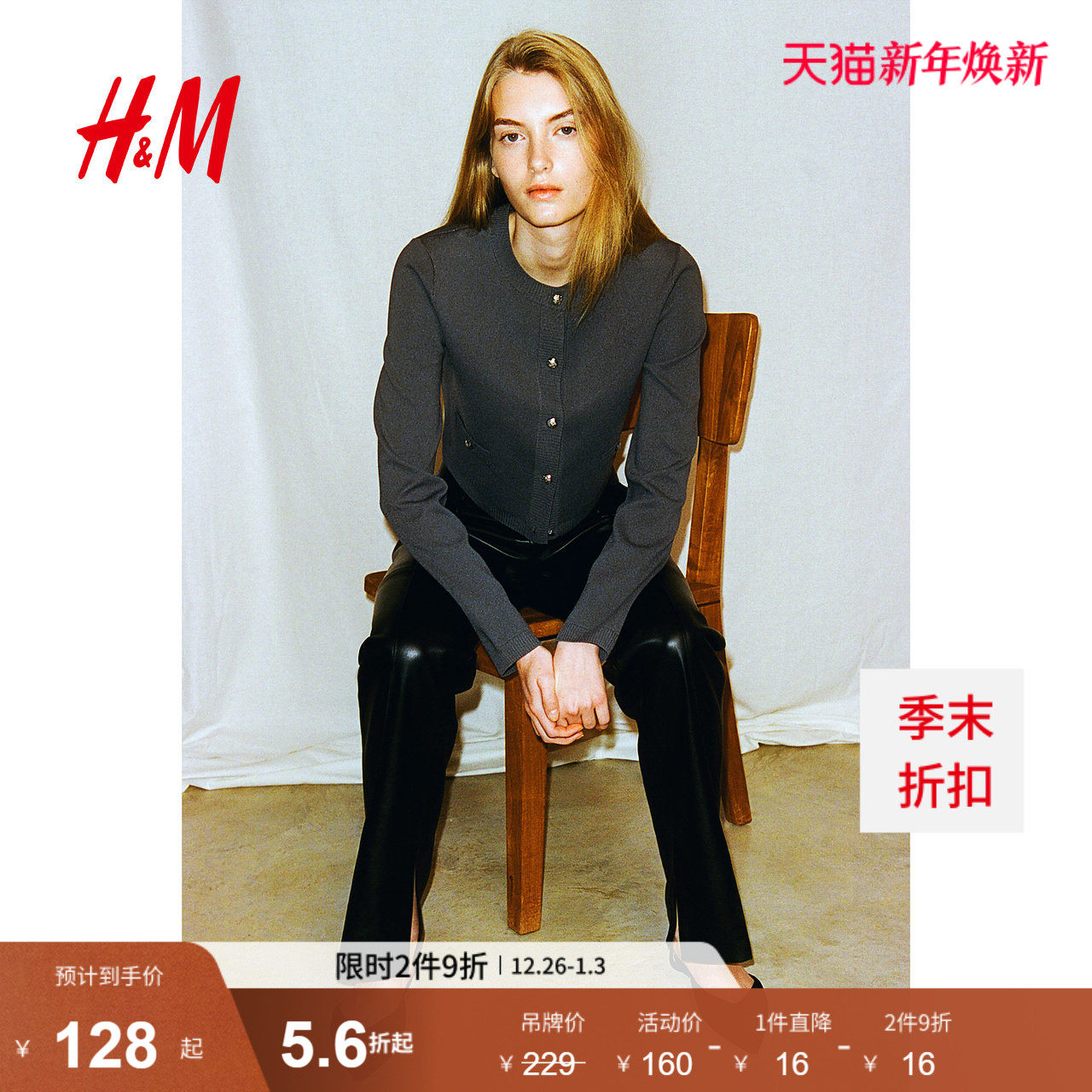 HM女装毛针织衫冬季气质时尚休闲潮流细密针织miu系开衫1265360