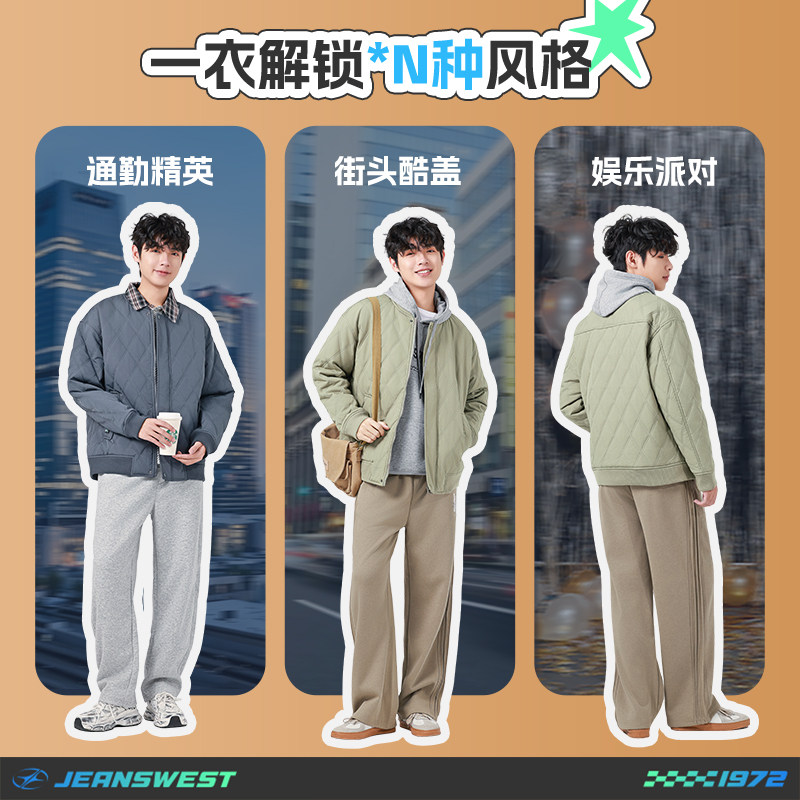 【王一博同款】真维斯立领菱格棉服冬季新款休闲男装美式外套E5