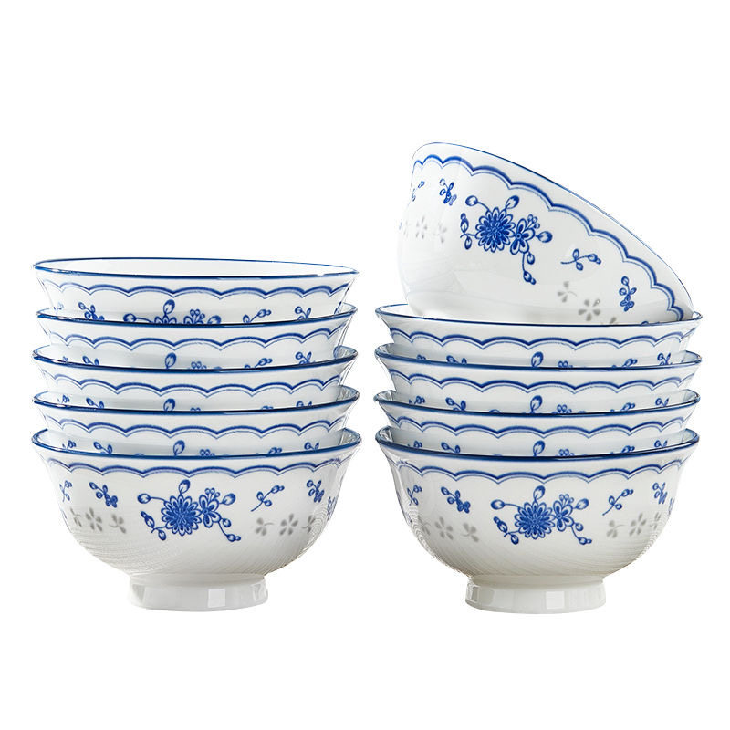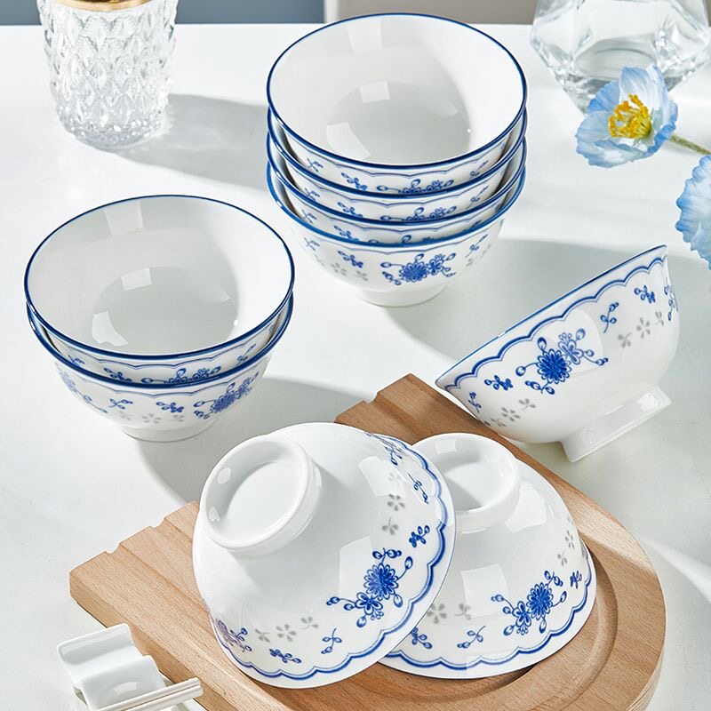 家用2025年新款高颜值青花陶瓷高脚碗釉下彩饭碗面碗汤碗盘具餐具