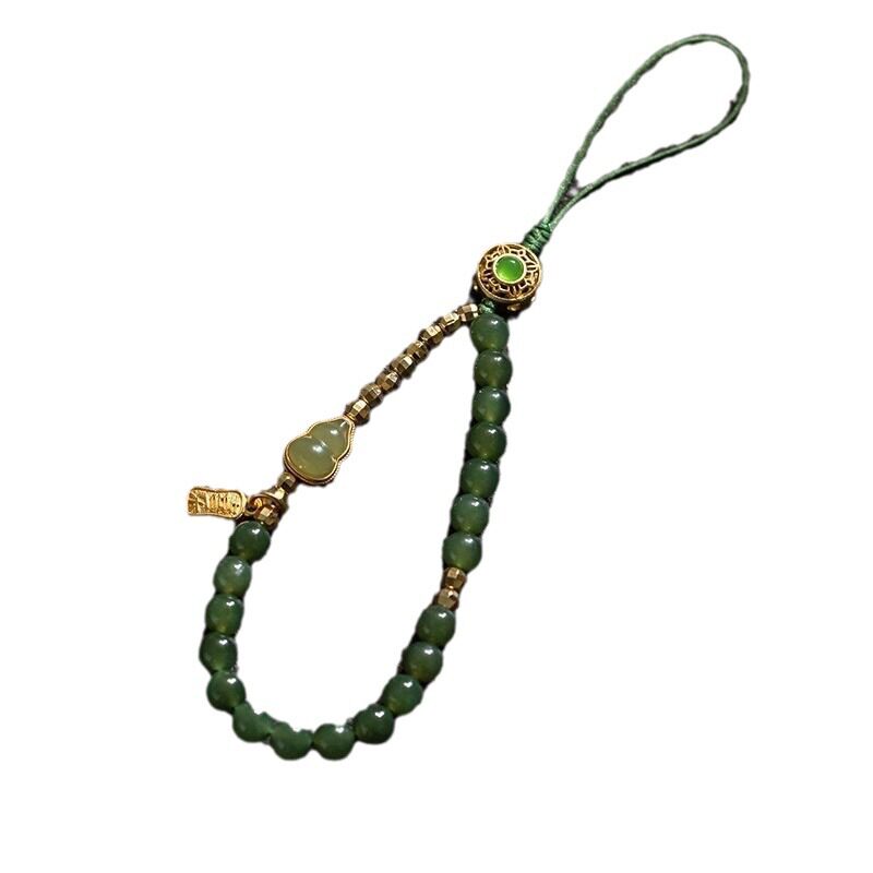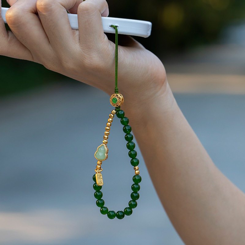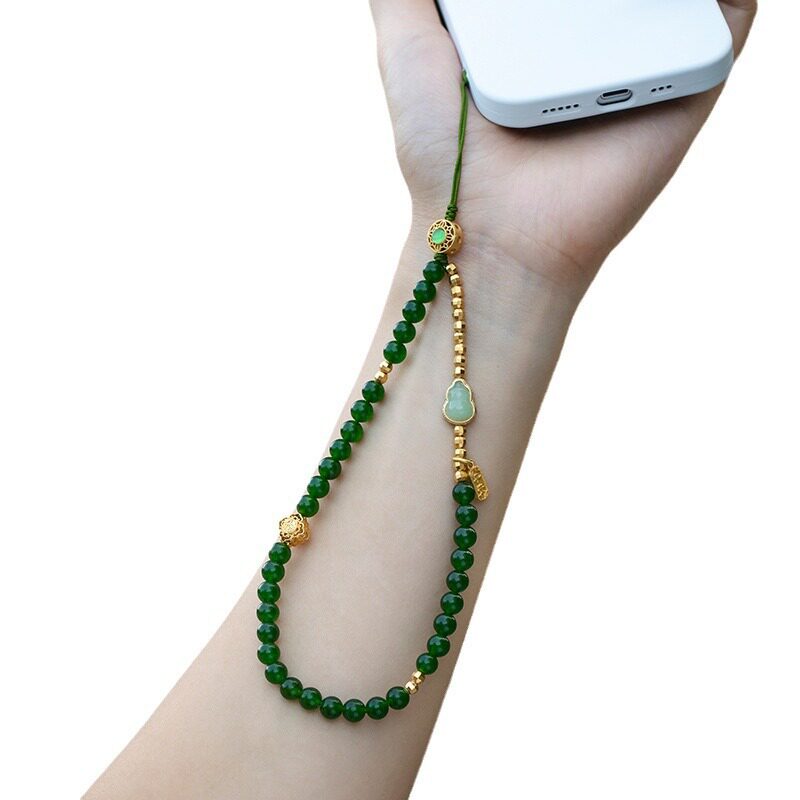 禄平安天然和田青玉手机链挂绳手腕短款高级防丢绳手机壳