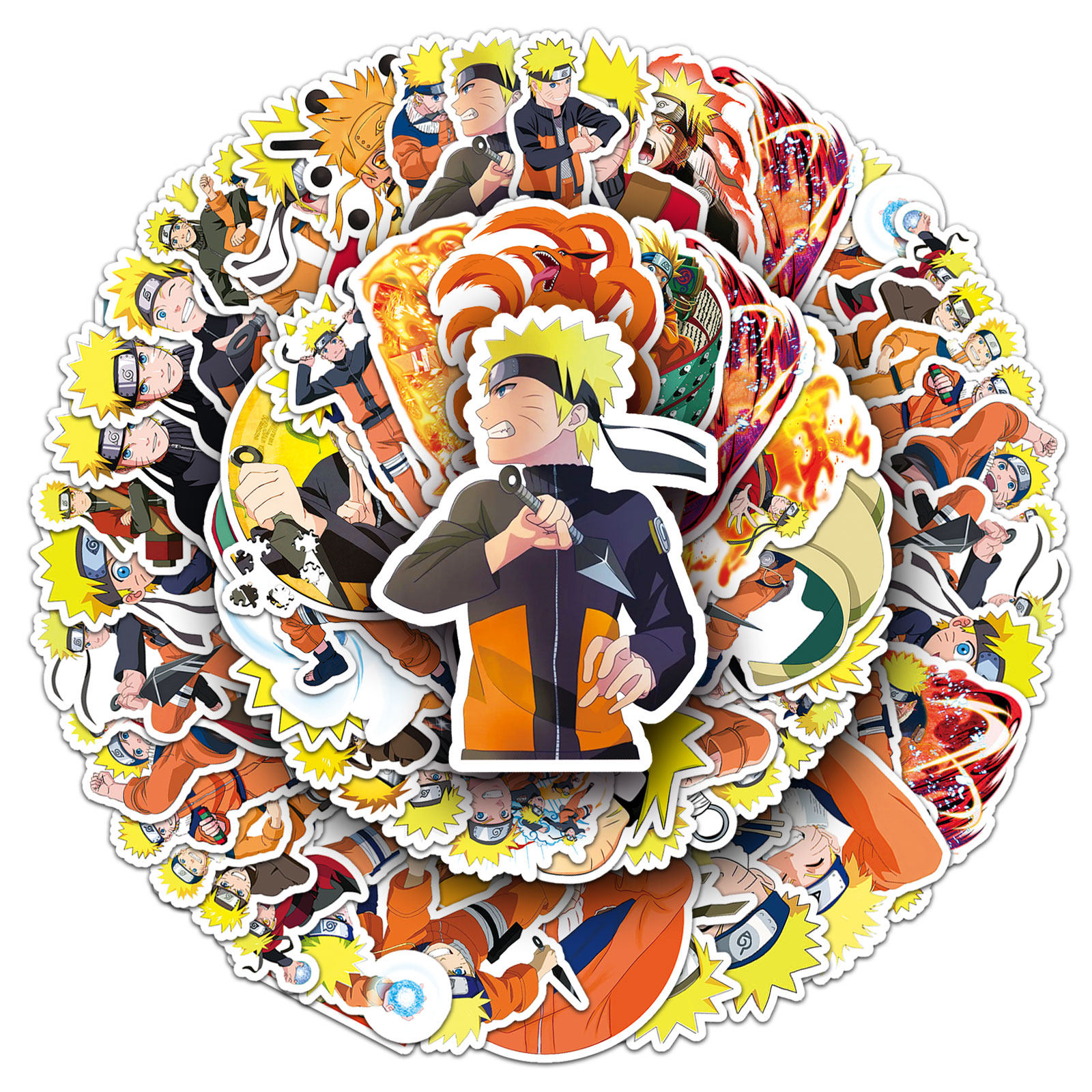 100张鸣人九尾Q版贴纸火影忍者日漫周边卡通图案行李箱头盔保温杯充电宝手机壳装饰撕下无痕防水贴纸