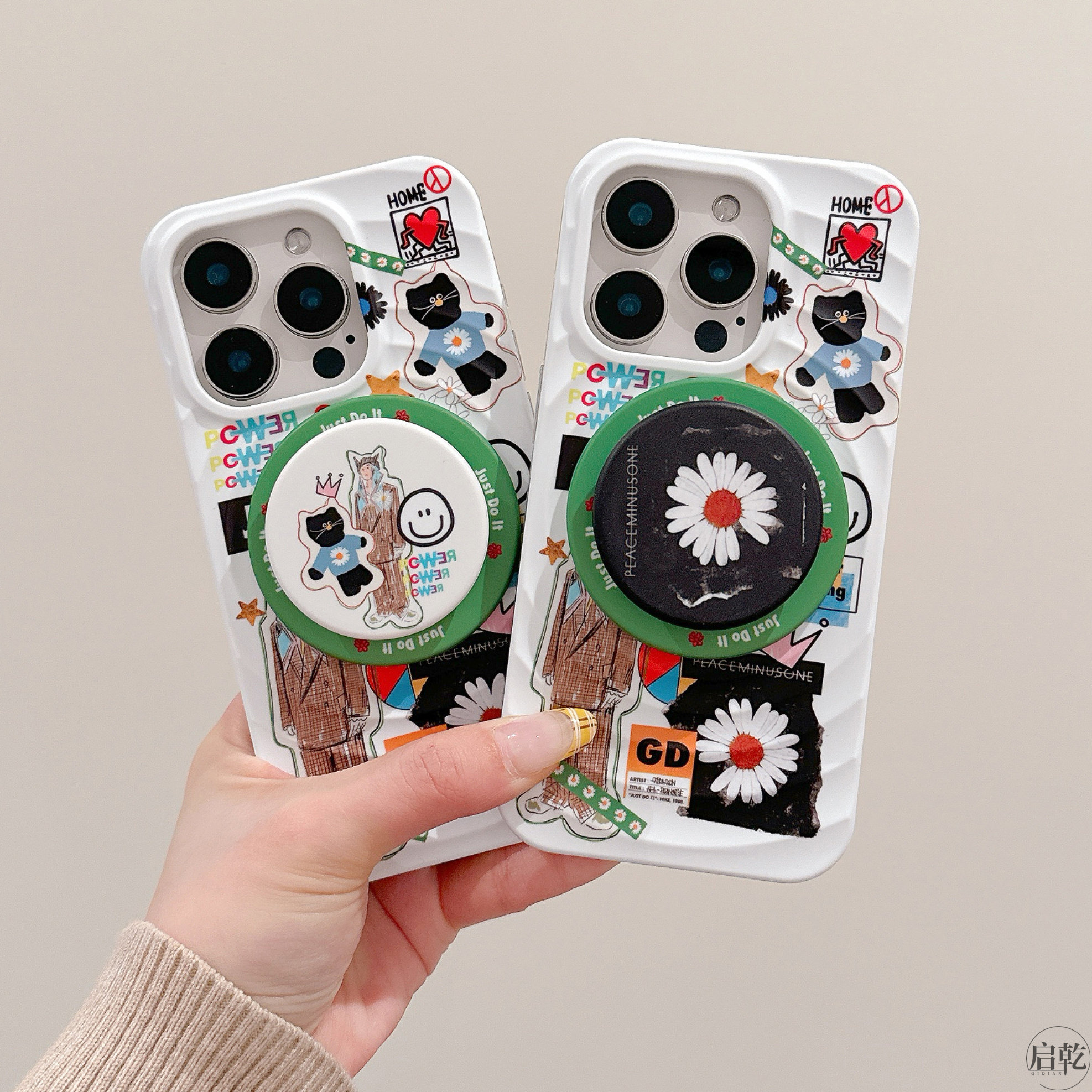 启乾 磁吸GD痛壳带支架iPhone17/16手机壳适用苹果15/14promax菲林波漾硬壳13涂鸦小雏菊权志龙潮牌创意新款