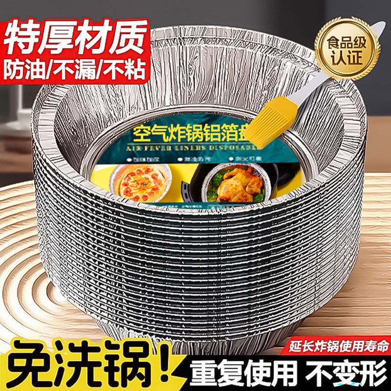 空气炸锅专用加厚锡纸盘盒烧烤箱烘焙锡箔碗家用锡纸盒食品级圆形