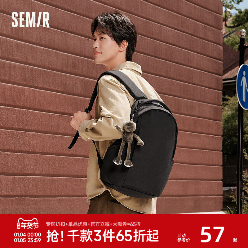 森马双肩包男2024新款潮流小众蛋壳背包大容量通勤电脑包情侣书包