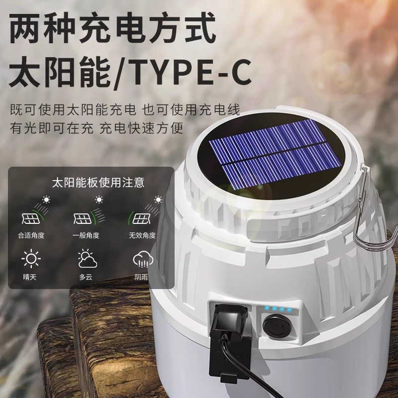 太阳能充电高亮大电量照明应急灯户外野营露营帐篷灯地摊灯长续航