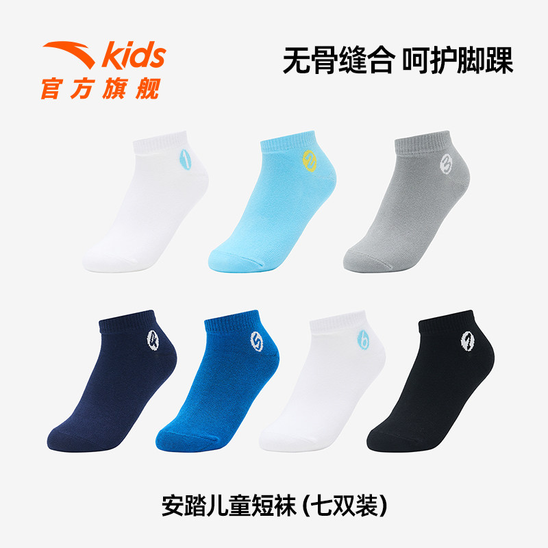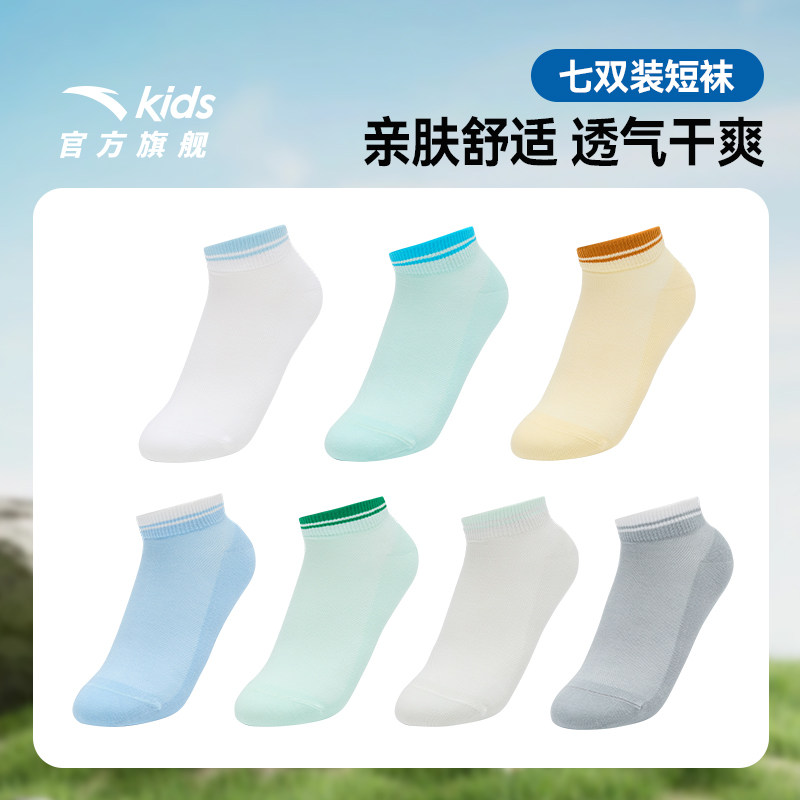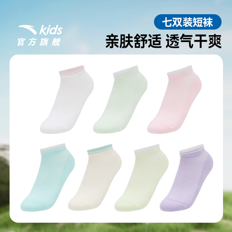 安踏儿童袜子夏款2025新莫代尔棉七双装短袜子男运动跑步袜子女童