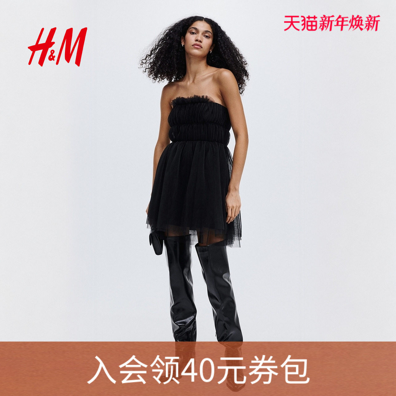 HM冬季女装薄纱抹胸式连衣裙1318153