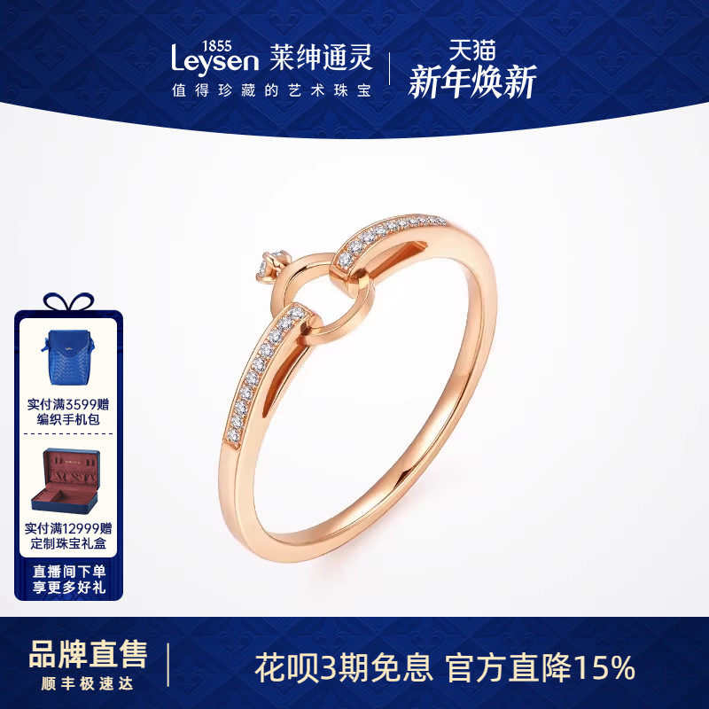 莱绅通灵珠宝 指尖华冠 18k金钻石戒指 求婚钻戒女bb戒可转动