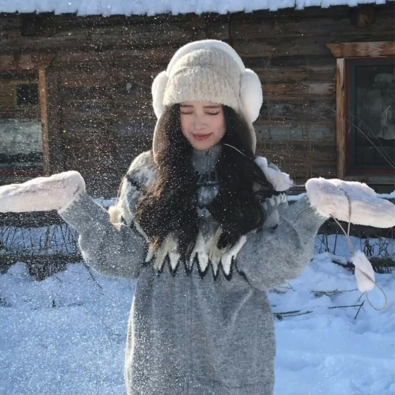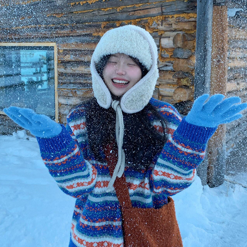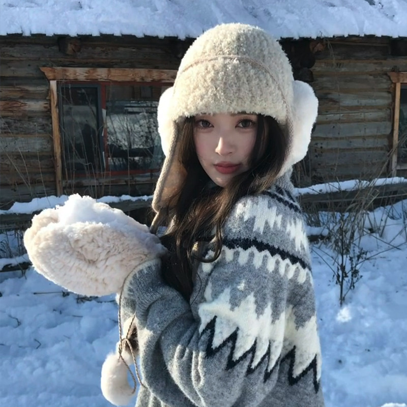 保暖飞行帽防风护耳雷锋帽子女秋冬季加厚加绒针织帽巴拉克拉法帽