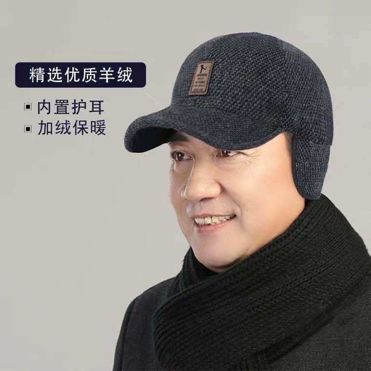 老人帽子男士冬天中老年保暖护耳毛呢棒球帽秋冬季爸爸鸭舌帽加绒