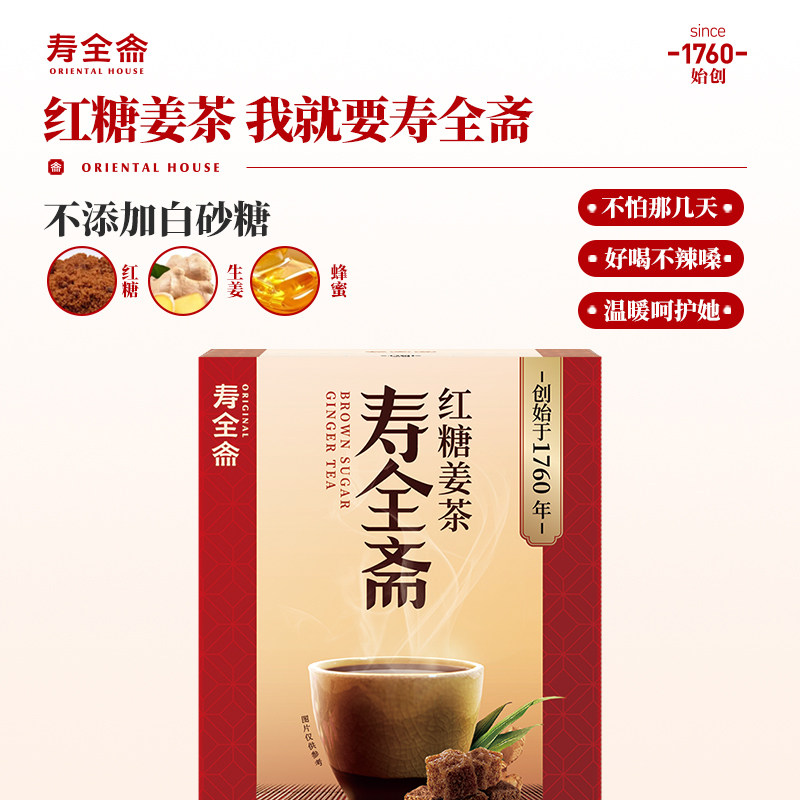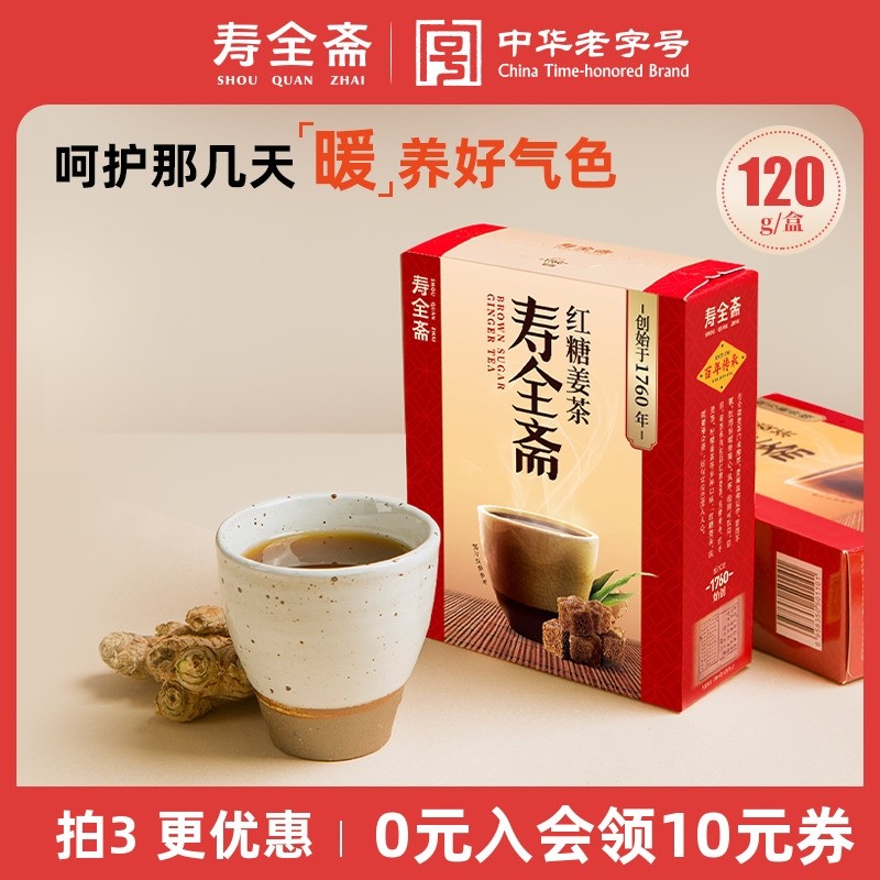 寿全斋红糖姜茶大姨妈喝生姜汁红糖水姜枣茶120g/盒红枣老姜黑糖