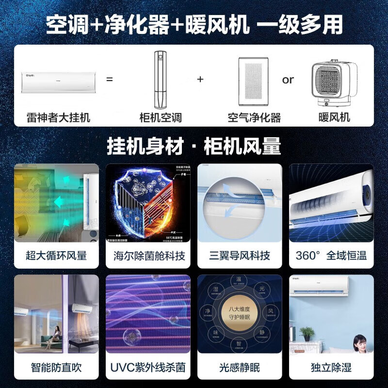 【雷神者】海尔空调挂机大3匹2P冷暖家用壁挂新一级能效除菌官方