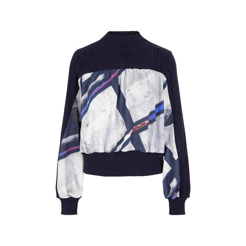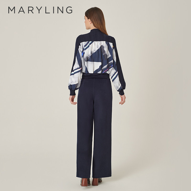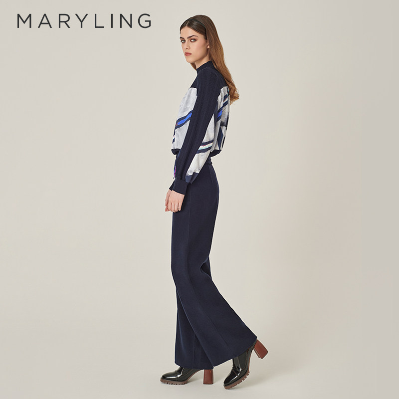 MARYLING玛俪琳秋冬新品灰蓝色针梭拼接艺术线条上衣A1EHW26460