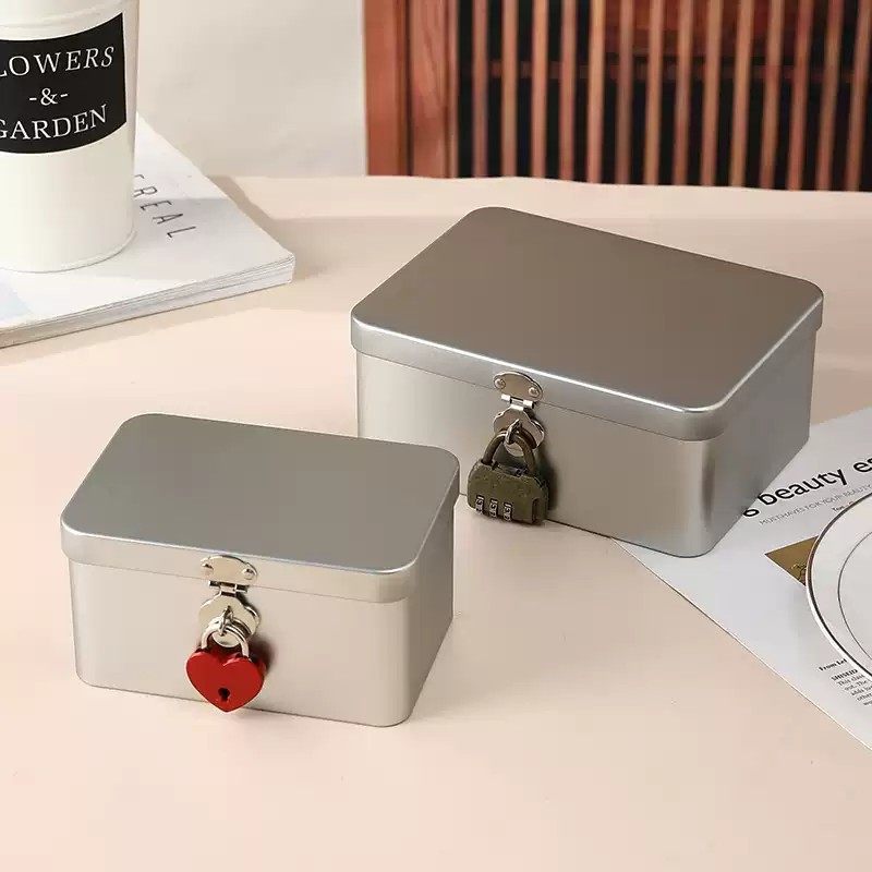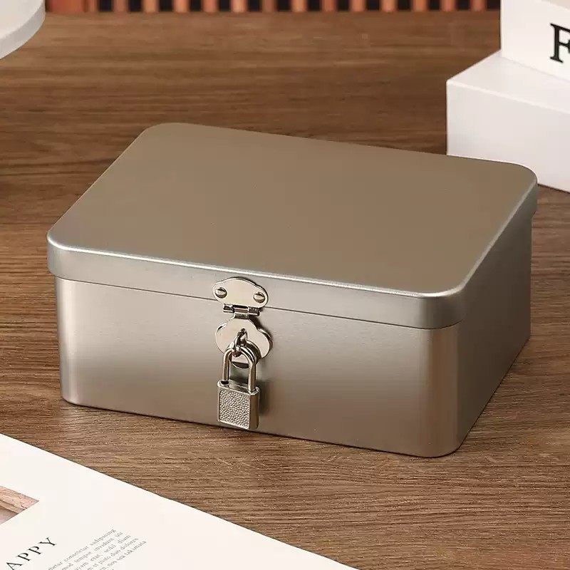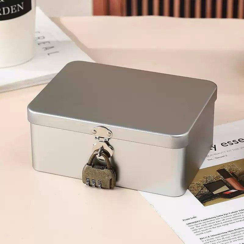 装现金钱箱保险盒子桌面钥匙铁盒密码盒小收银箱子证件手机储物盒