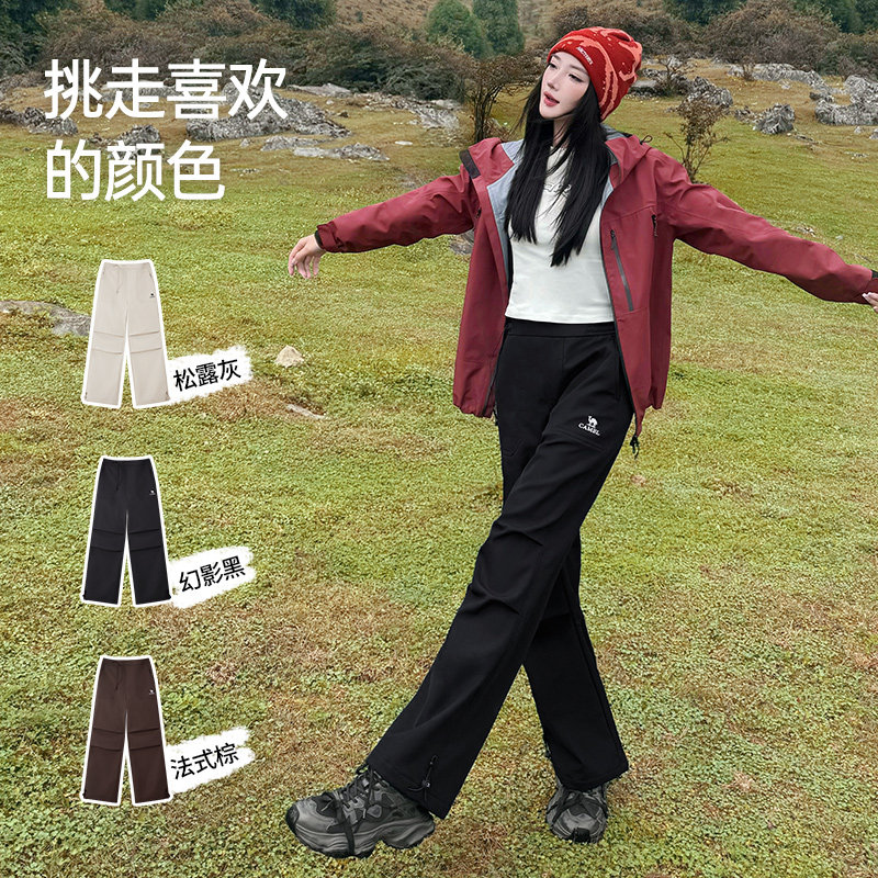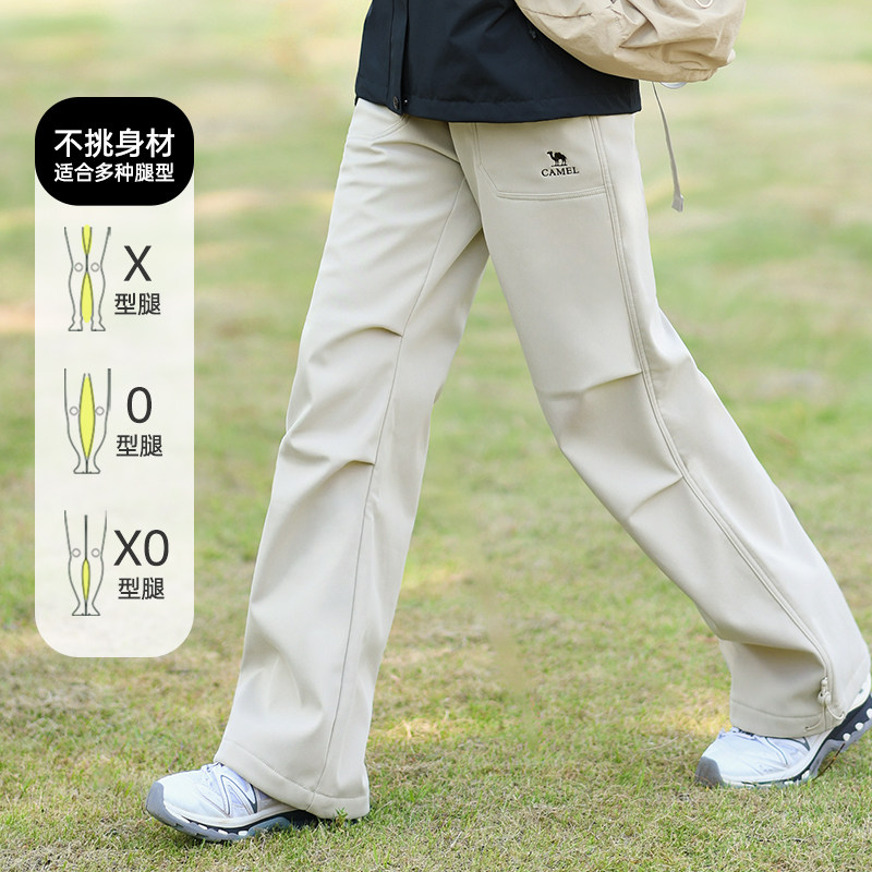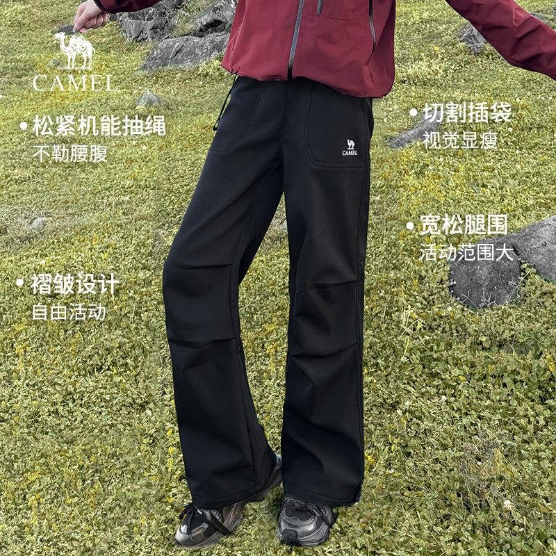 骆驼直筒加绒长裤女装2025新款秋冬黑色加厚直筒休闲软壳工装裤子