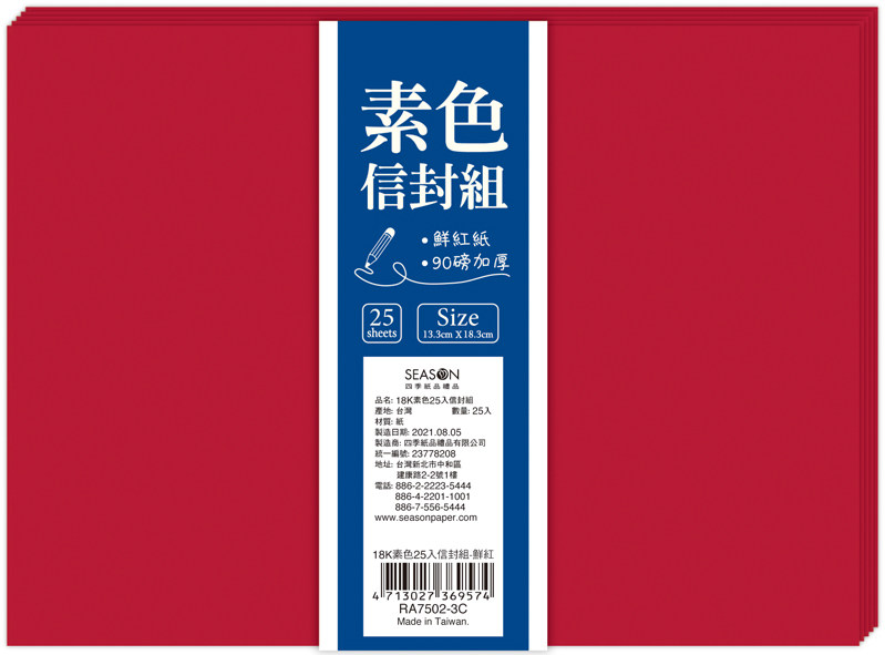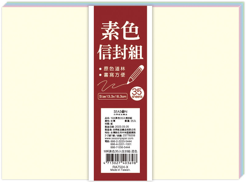 SEASON台湾四季18K素色40入信封盒进口色纸西式可邮寄