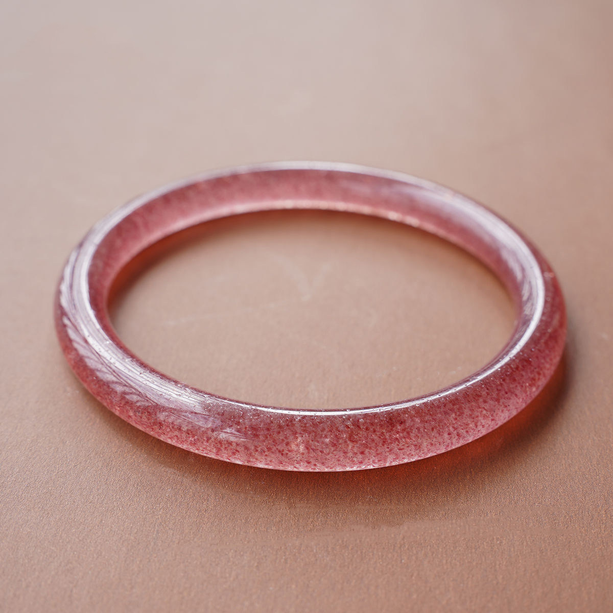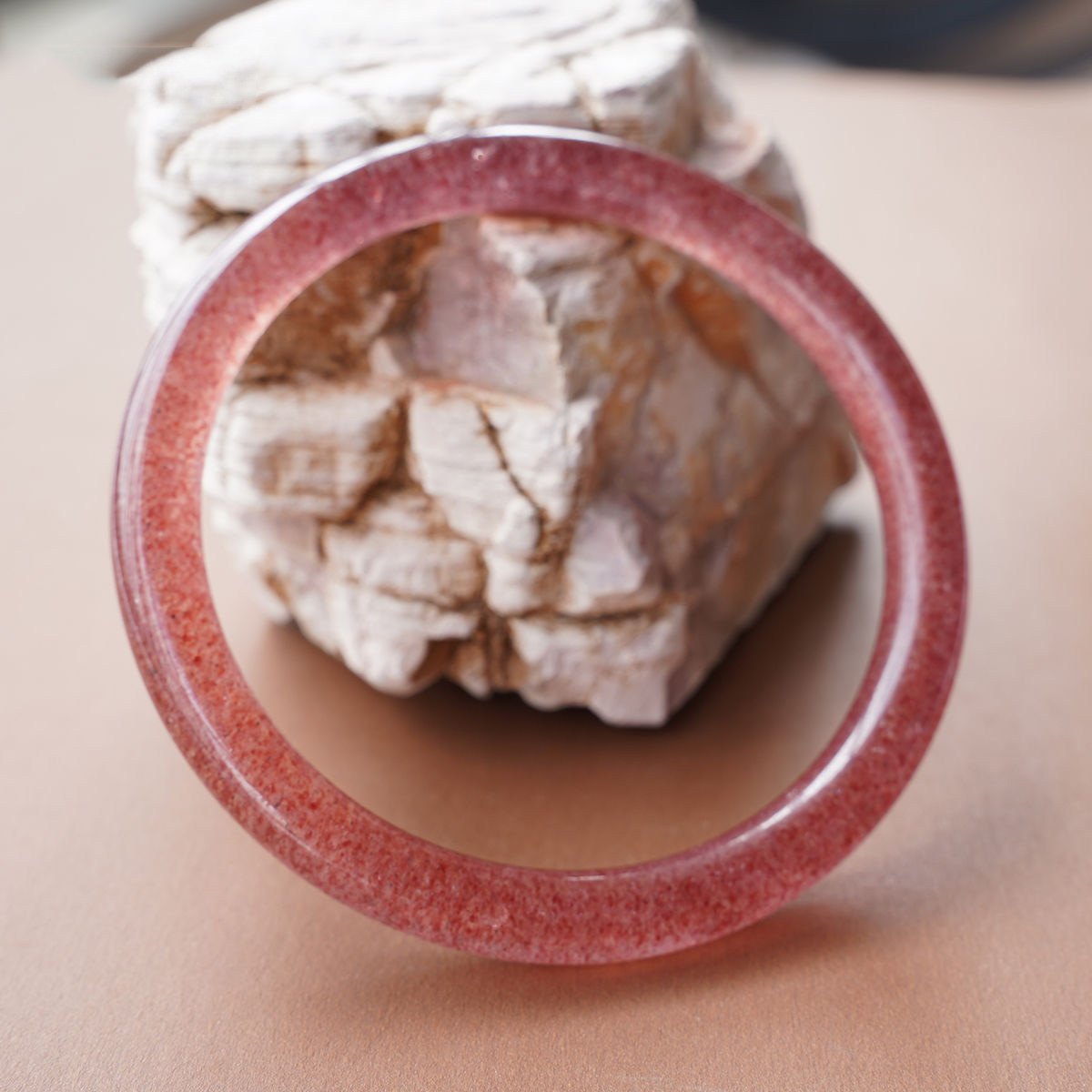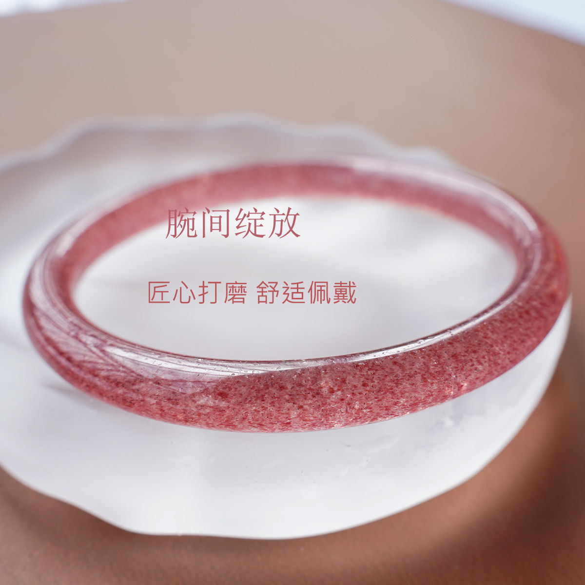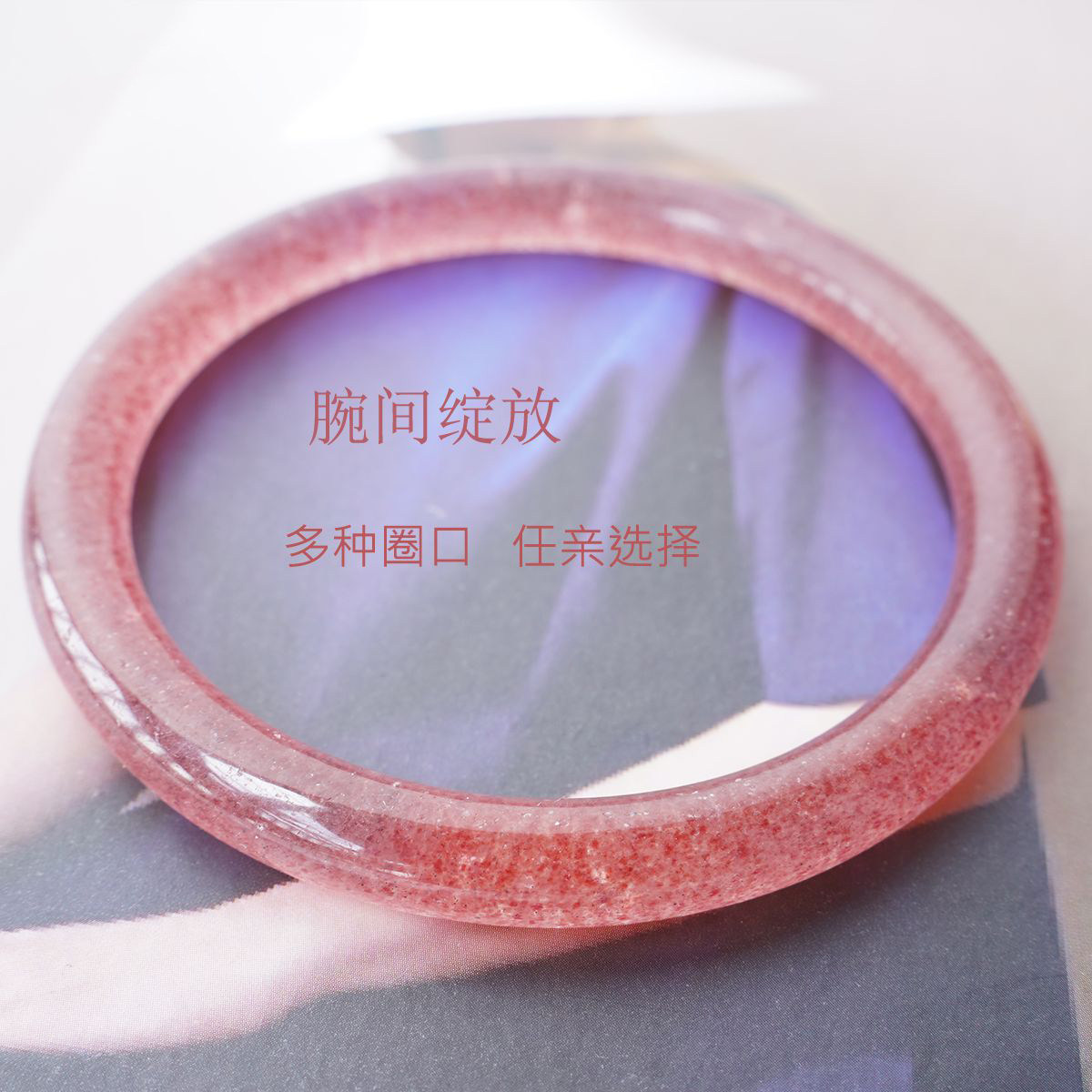 冰透粉草莓晶手镯女招桃花鸽血红星光点点素圈镯子学生闺蜜礼物