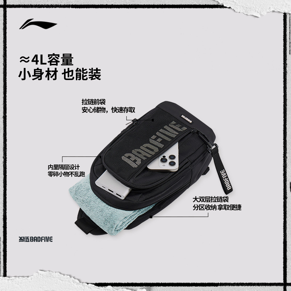 李宁反伍BADFIVE单肩包男包女包2025新款防泼水环保运动包