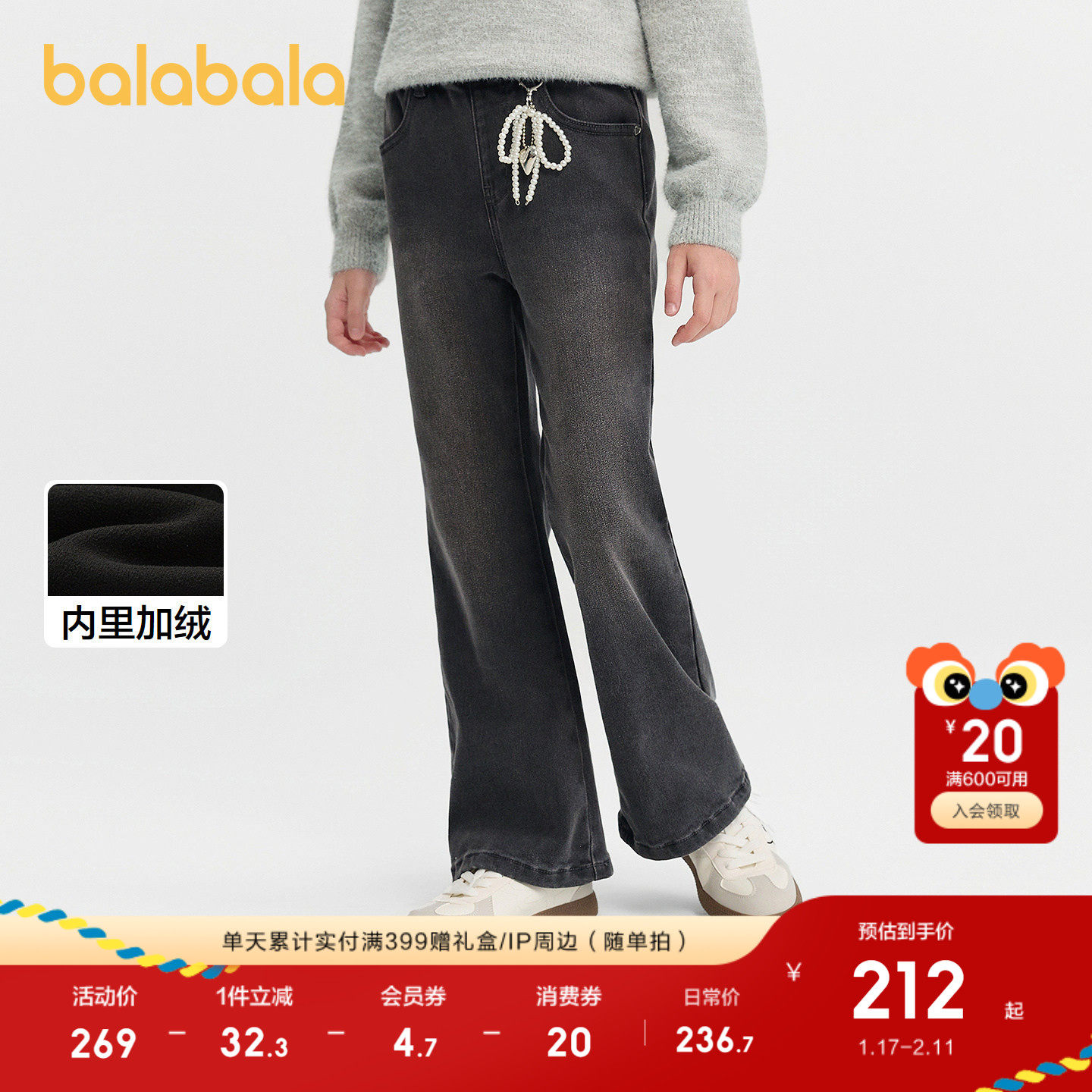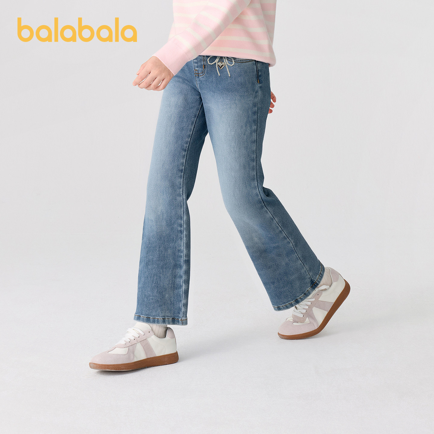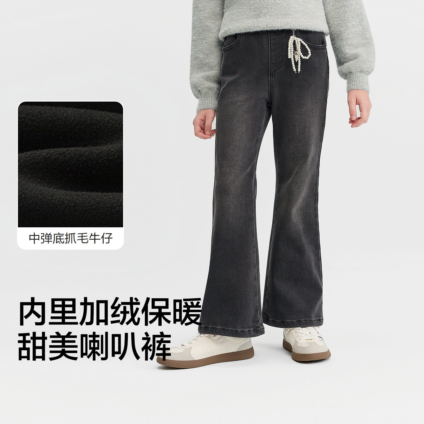 【商场同款】巴拉巴拉儿童裤子女童冬加绒牛仔长裤2025新款喇叭裤