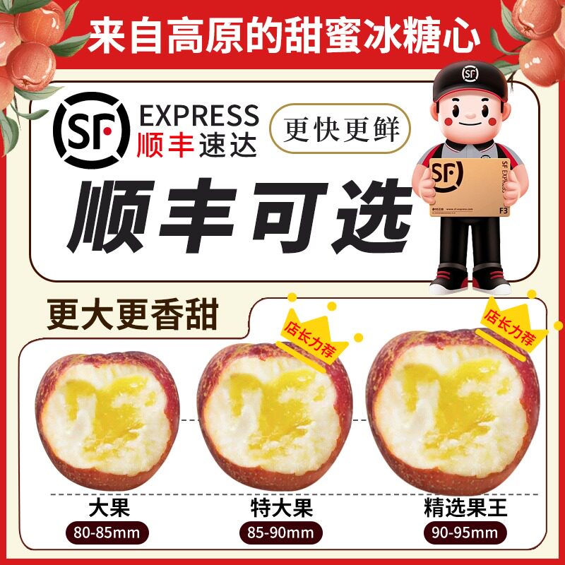 顺丰新疆阿克苏冰糖心苹果10水果新鲜当季整箱斤正品官方旗舰店甜