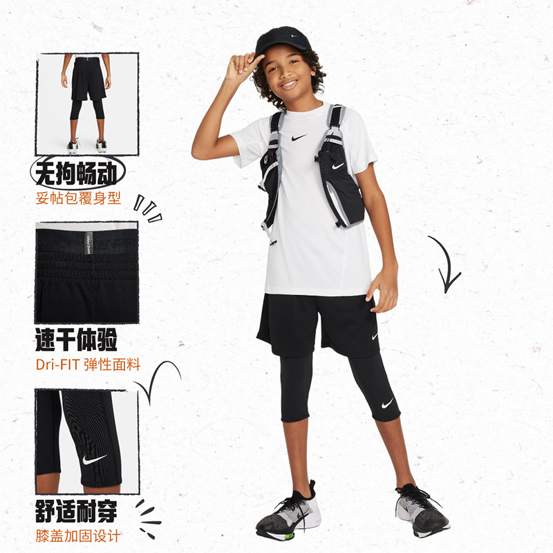 耐克大童训练七分紧身裤春男童举重透气NIKE PRO DRI-FIT FJ6819