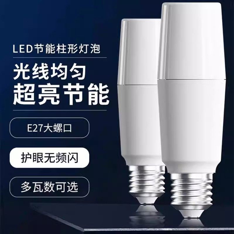 led灯泡超亮节能灯白光家用省电E27大螺口客厅室内灯照明圆柱形灯