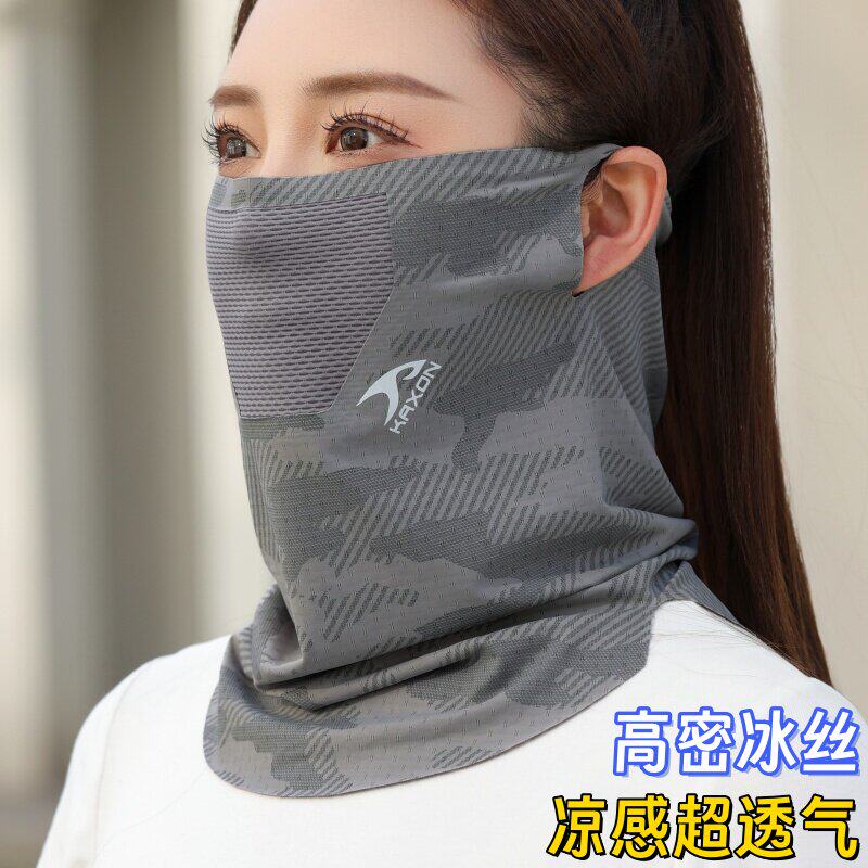 跑步防晒面罩透气防紫外线女挂耳冰丝围脖骑行钓鱼护颈遮阳男迷彩