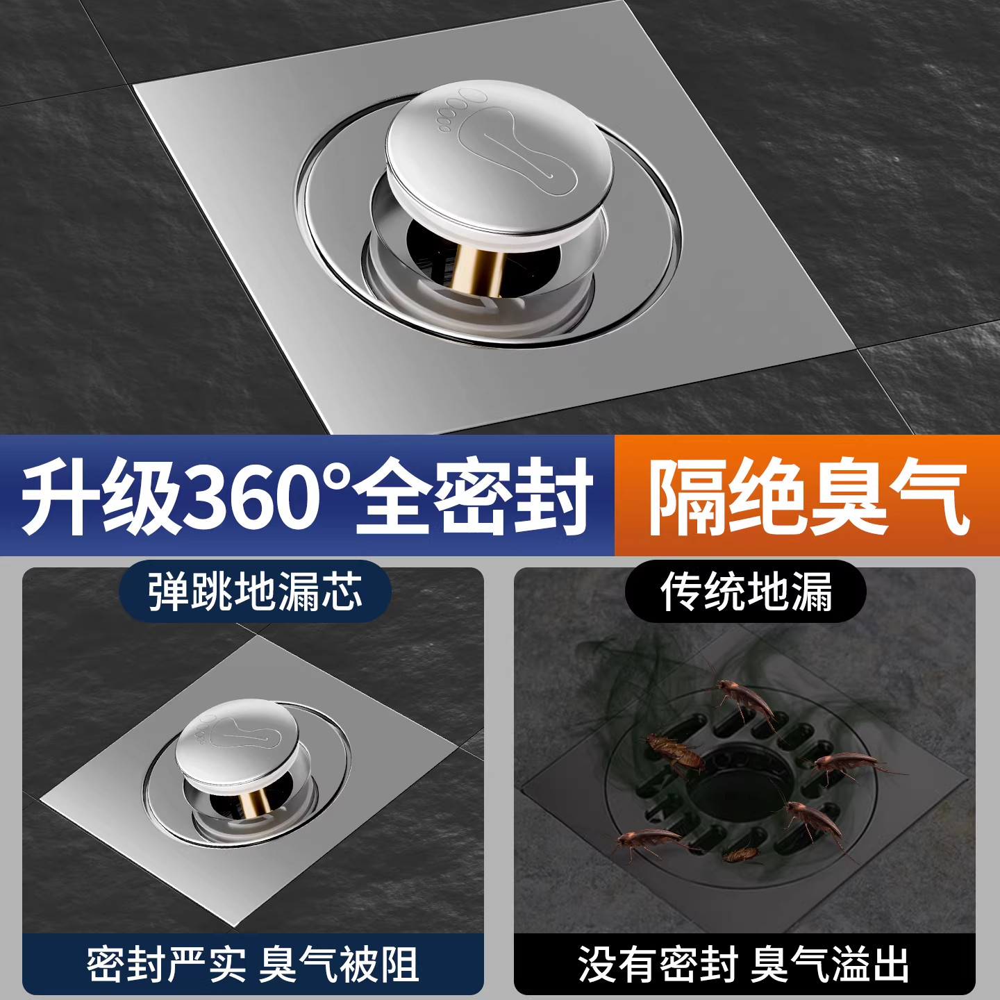 卫生间地漏防臭器弹跳芯密封盖下水道防返臭虫神器通用按压脚踩式