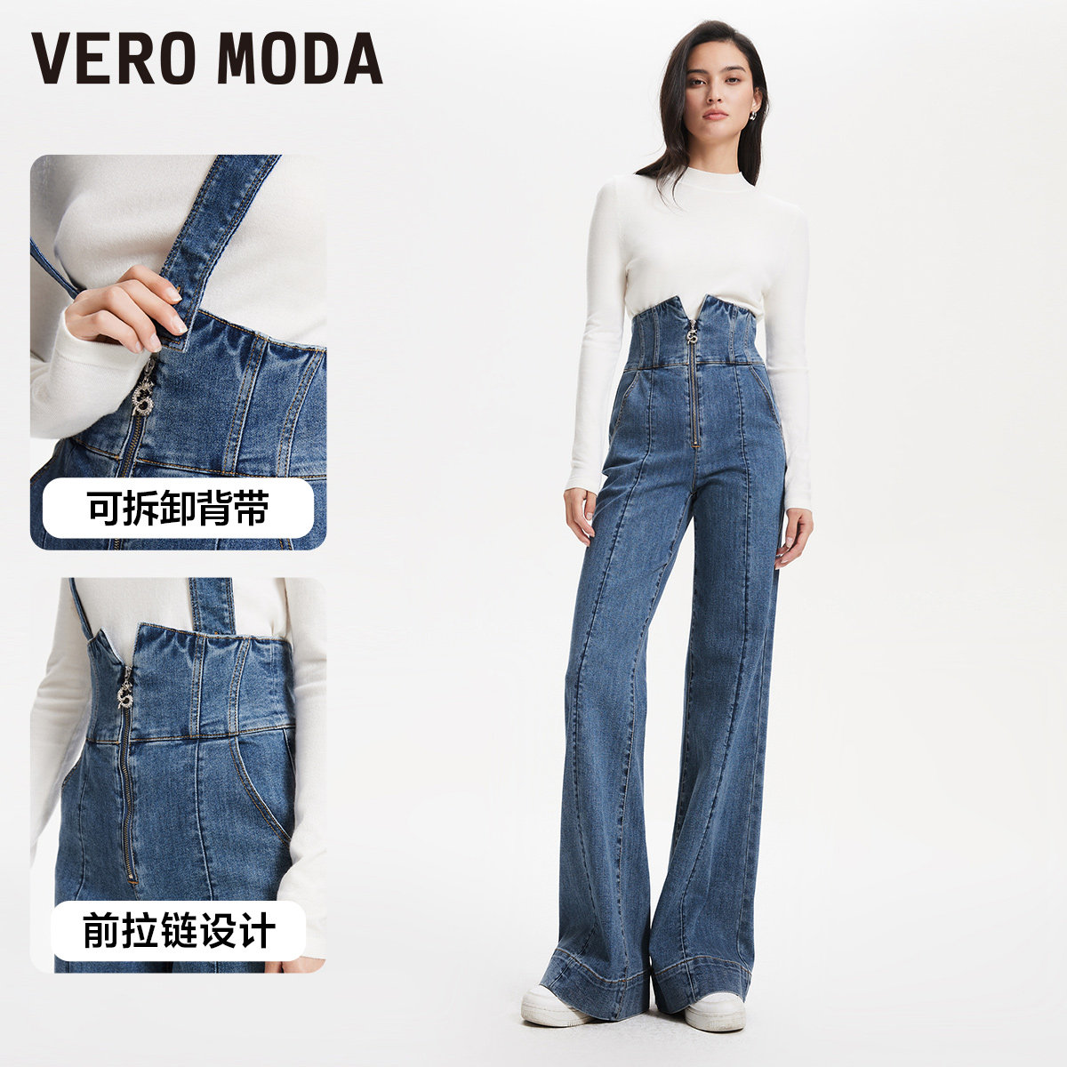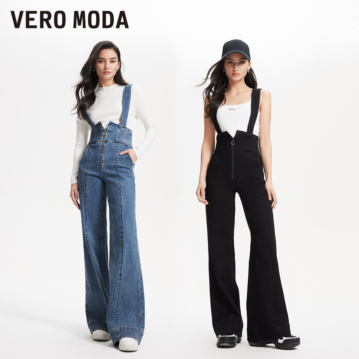 Vero Moda奥莱牛仔背带裤女春秋新款高腰修身显瘦宽松喇叭裤流行