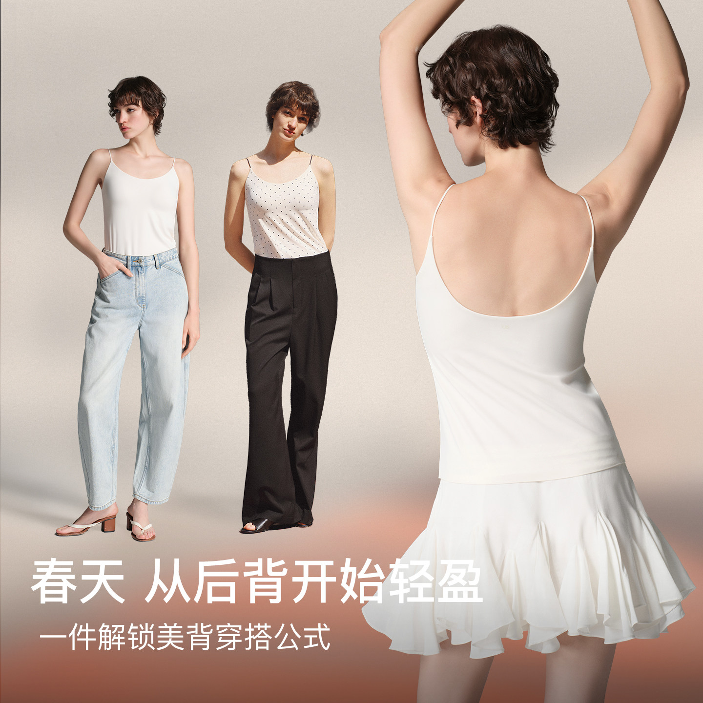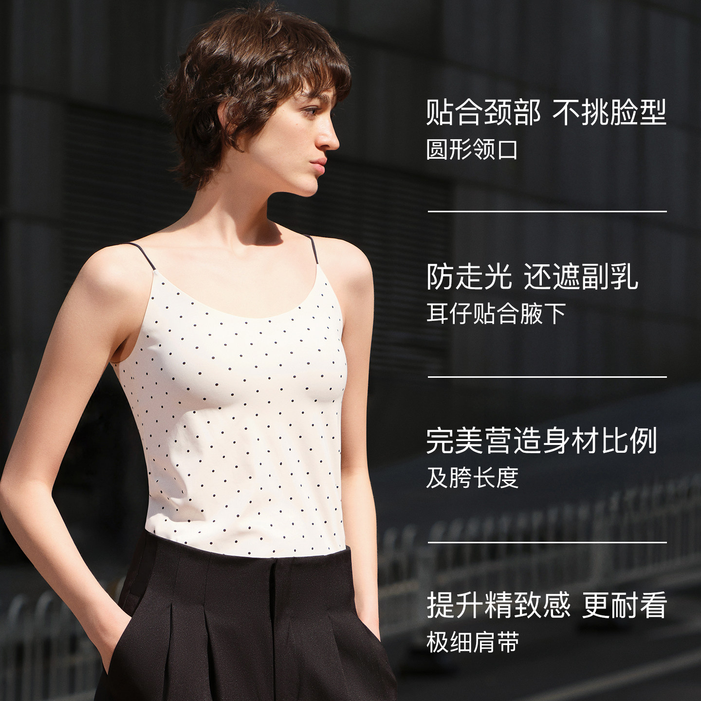 ubras波点圆领白色吊带背心2026新款带胸垫上衣内搭辣妹可外穿