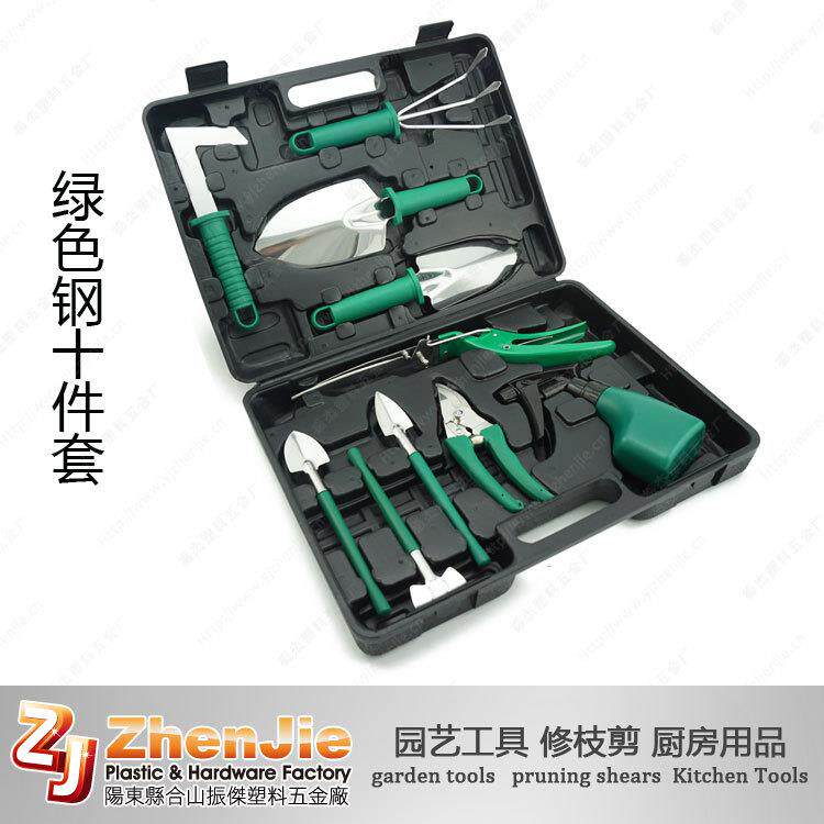 现货新款不锈钢十件套园艺工具套装花园用具铲耙锹剪喷壶园林用品