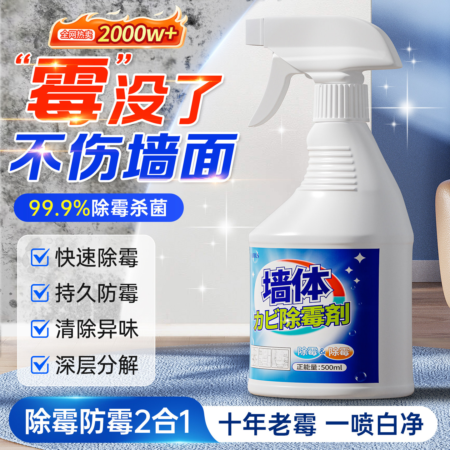 墙体除霉剂去霉斑霉菌味清洁剂墙面家用白墙壁防发霉喷雾神器防霉