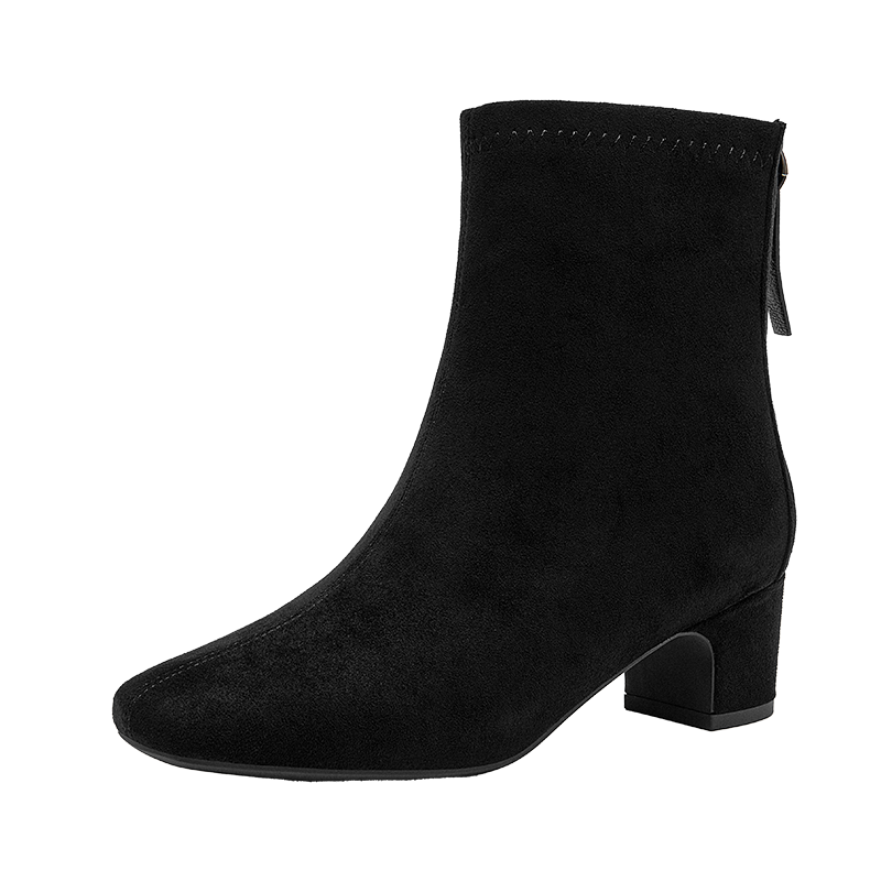 戈美其粗跟短靴女2025秋冬新款气质高跟弹力靴黑色休闲瘦瘦时装靴
