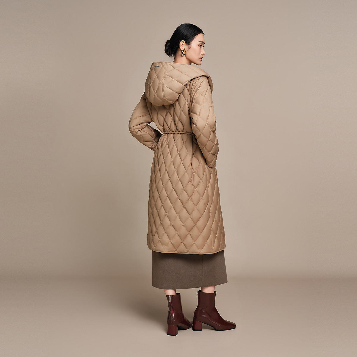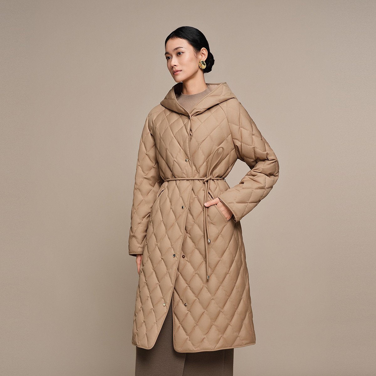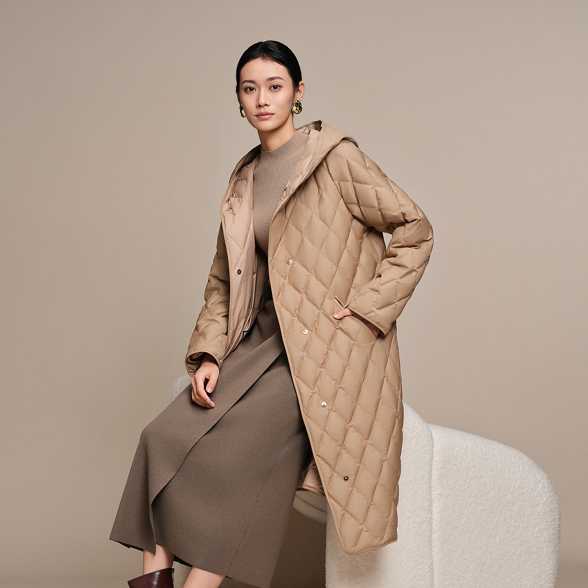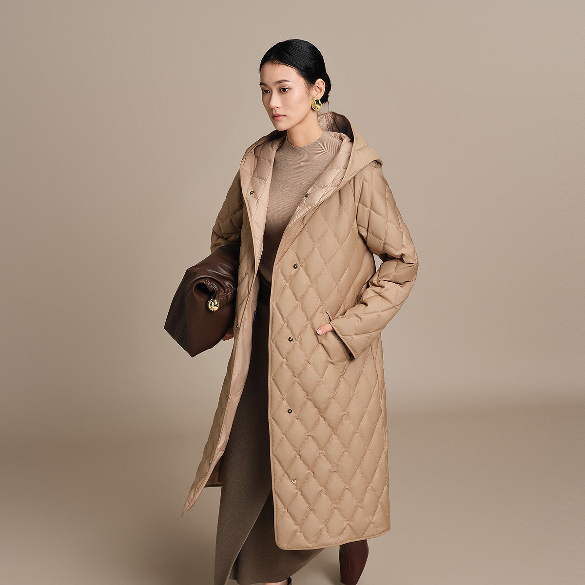 波司登2025新款女士长款小香风连帽羽绒服外套保暖菱格时尚正品