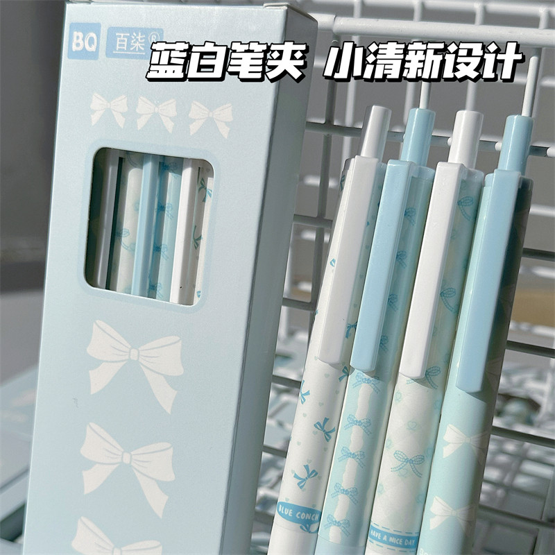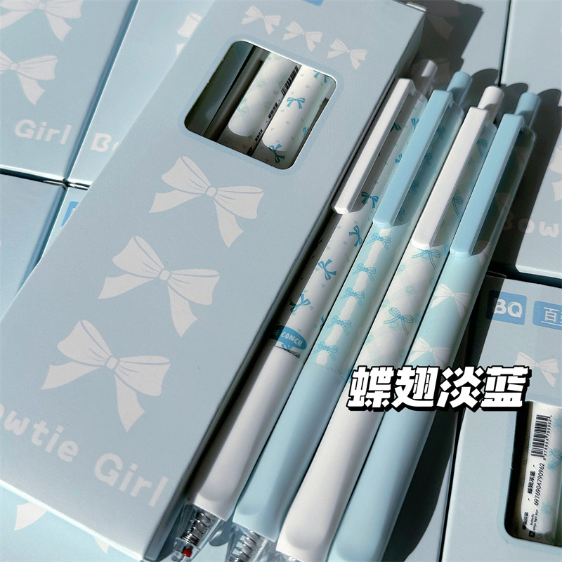 蝶翅淡蓝蝴蝶结高颜值ins风按动中性笔0.5学生专用正姿黑笔刷题笔