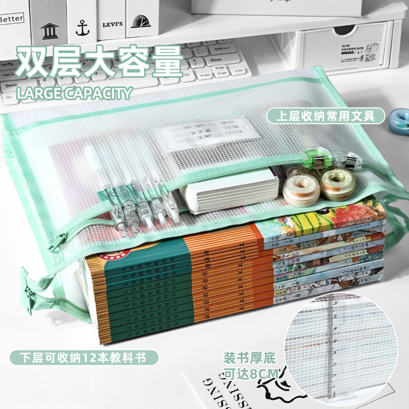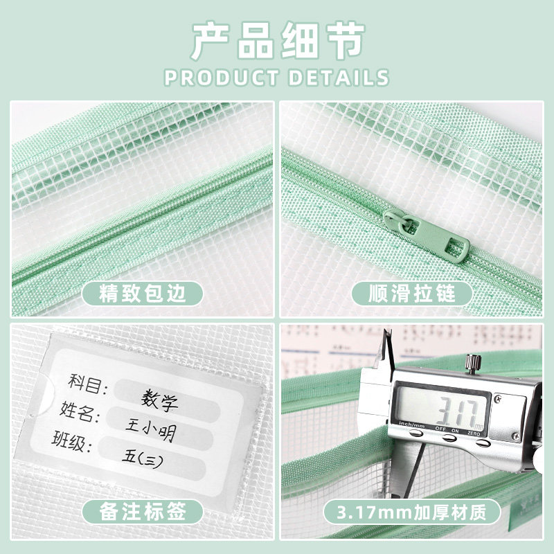 网格文件袋加厚透明网格拉链袋A4试卷收纳袋学生用考试文具袋防水笔袋办公用品批发公文档案袋资料袋包邮