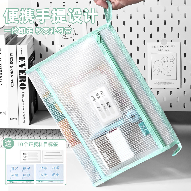 文件袋收纳袋书袋拉链式透明科目分类袋小学生手提小学生a4初中生专用拎书试卷补习补课包资料学科美术防水袋