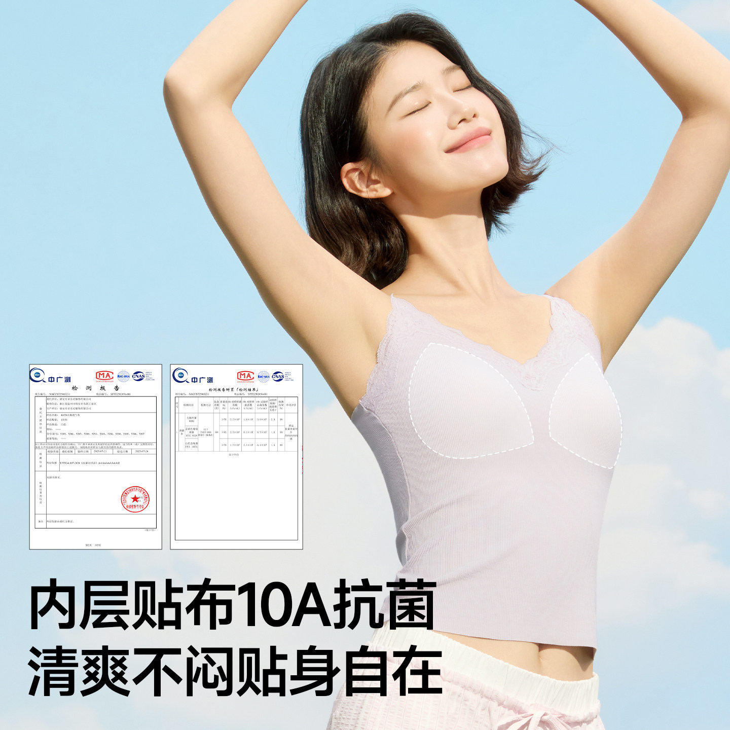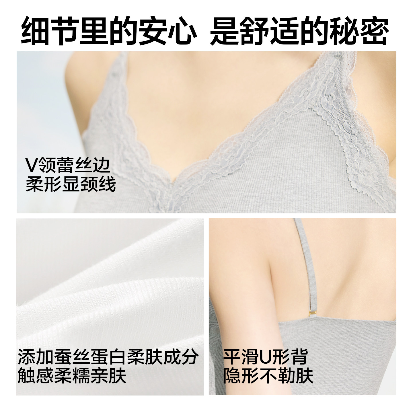【刘亦菲同款】猫人水光蕾丝睫毛打底吊带背心女带胸垫文胸上衣