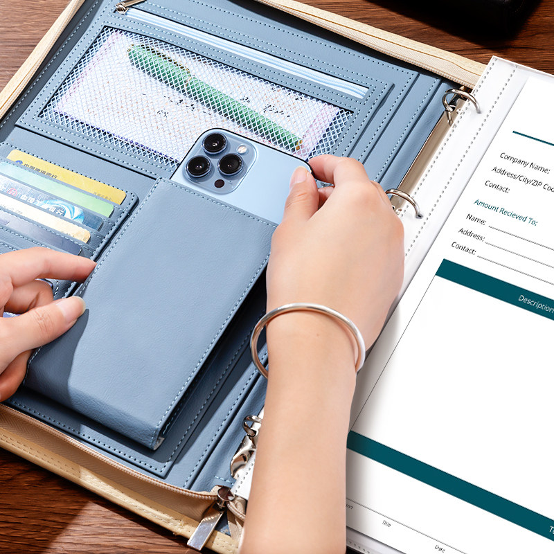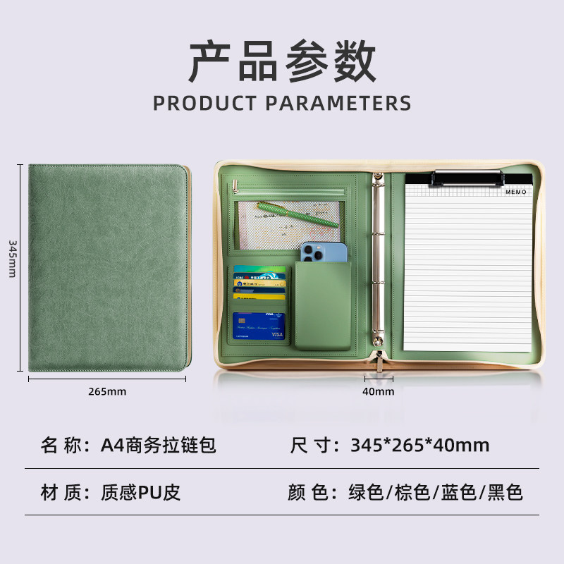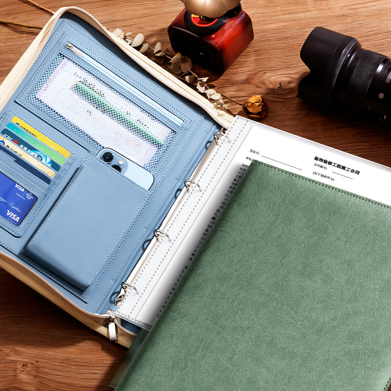 A4文件夹拉链2026年新款资料夹皮质经理夹置业顾问销讲夹设计师谈单本商务谈判合同档案夹本写字板夹办公用品